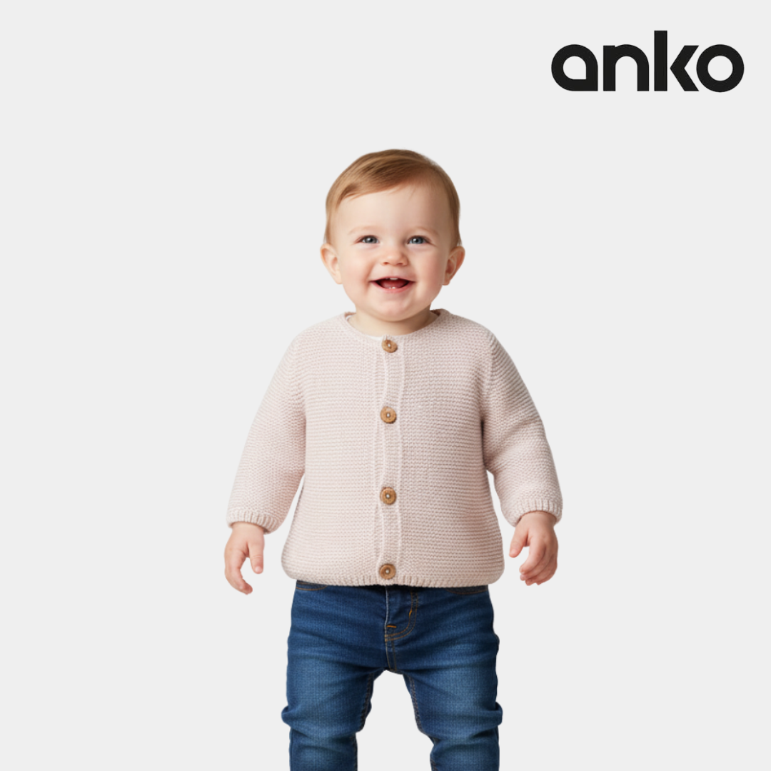 Sweet, soft, and practical—this baby pink cardigan adds warmth and charm to any baby outfit.